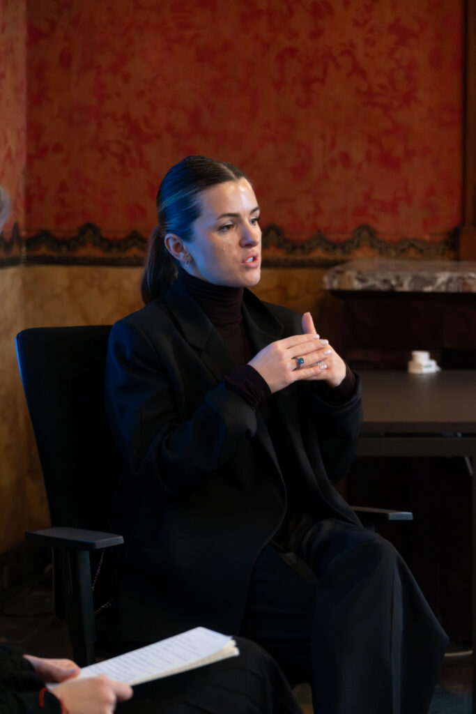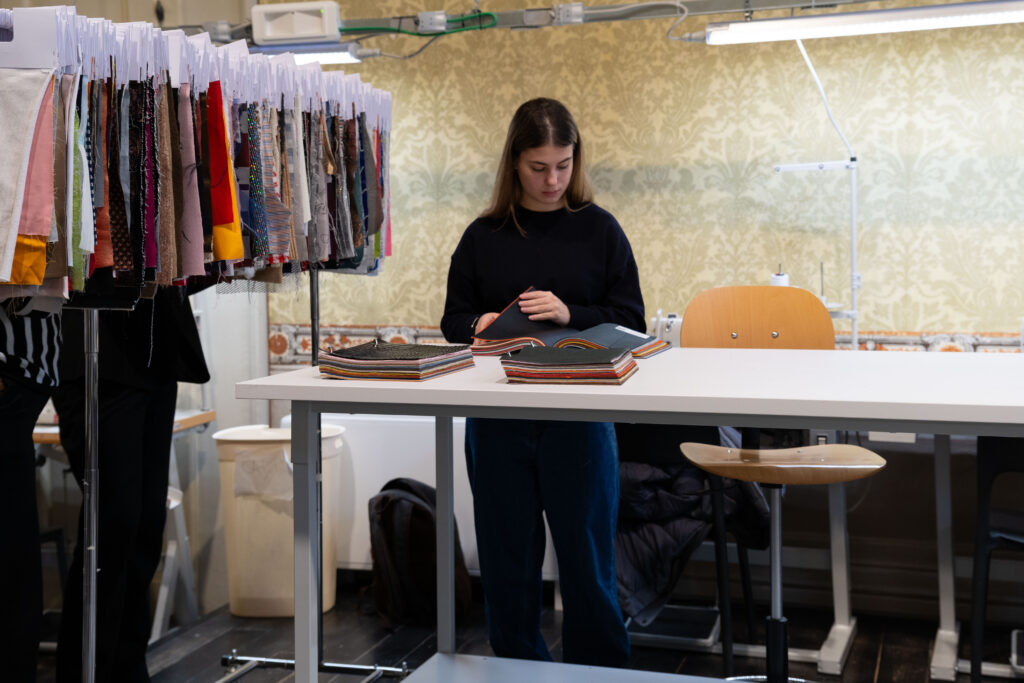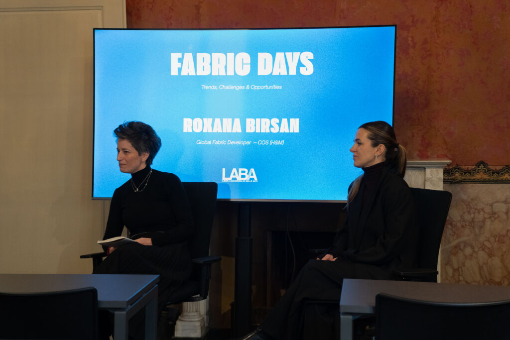 Momento di particolare interesse è stato l’intervento di Roxana Birsan, Global Fabric Developer per COS (brand del gruppo H&M). Il suo contributo ha offerto agli studenti un’occasione preziosa per conoscere il ruolo del global fabric developer all’interno di un brand internazionale, le dinamiche di sviluppo prodotto su scala globale, l’importanza della ricerca tessile nei processi creativi e l’organizzazione e la visione aziendale di COS. Attraverso il racconto del proprio percorso professionale, Roxana Birsan ha fornito uno sguardo concreto sulle opportunità lavorative nel settore moda, sottolineando quanto competenze tecniche, sensibilità estetica e attenzione alla sostenibilità siano oggi elementi centrali nello sviluppo dei materiali.